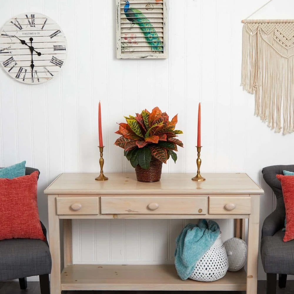 Add explosive colors to empty spaces with this artificial garden croton plant flaunting countless layers of fiery, realistic foliage in naturally occurring hues – all of which feel real to the touch. Standing 17 in. H from a basket planter, this multicolored plant can easily bring life to bare spaces. About Nearly Natural Inc. – For over 75-years, Nearly Natural Inc. has been providing conscientious consumers with beautiful alternatives to natural decorations. Employed and advised by naturalists who understand the live plant world, Nearly Natural is able to recreate the most realistic-looking decorative items for homes, offices, and businesses. Driven by a true commitment to customer service, attention to detail, and natural philosophy, Nearly Natural strives to bring customers the most beautiful, unique, and striking faux plants and floral on the market.