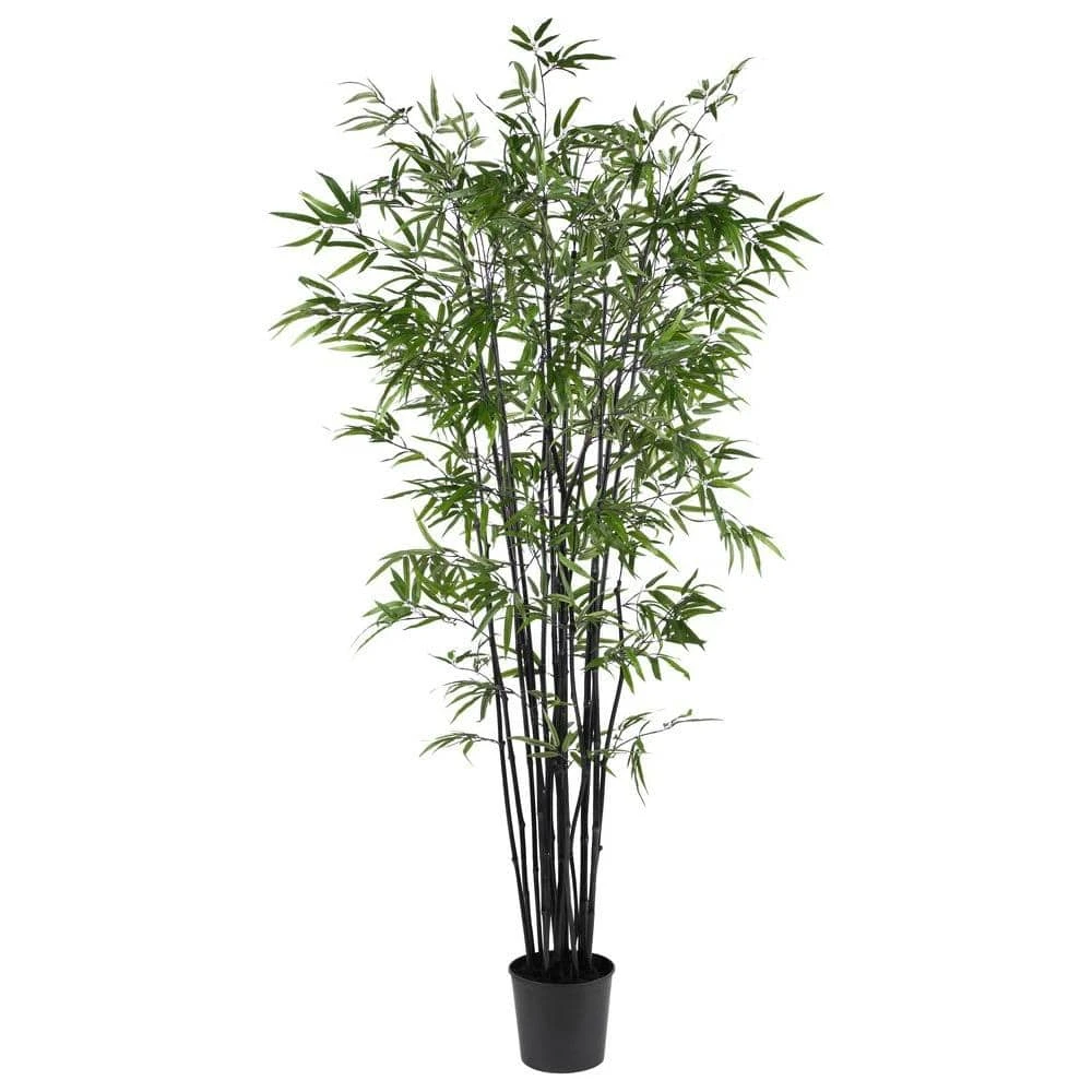 Add a touch of flair to your neutral home decor with this rare and exotic Black Bamboo Tree. Well known for its hardiness, this elegant looking bamboo will thrive without any water, sunlight, or pruning. Bright slender crisp leaves are a nice contrast to the deep rich color of its trunk. A full 6-1/2 ft. tall, this unique tree contains over 1,700 authentic styled leaves. A basic black pot blends well with the dark colored trunk.