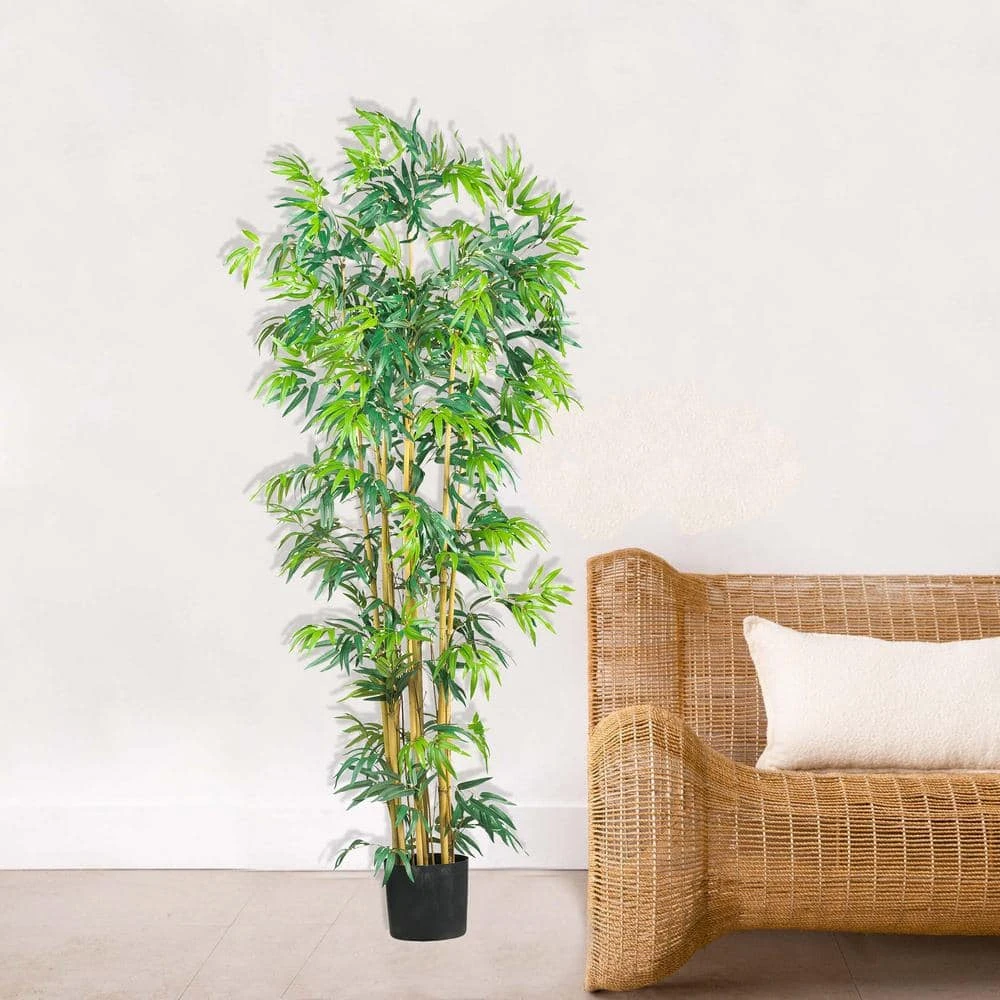 Our 6ft. Multi-Bambusa Bamboo silk tree takes center stage in any room. Thousands of airy bamboo leaves dangle from multiple tall natural stalks. Suitable for any home decor style, this Bamboo would look especially lovely as part of an oriental or Zen inspired design plan. Our Multi-Bambusa Bamboo is also appropriate for placing among live plants in sunrooms, solariums, or even the office.