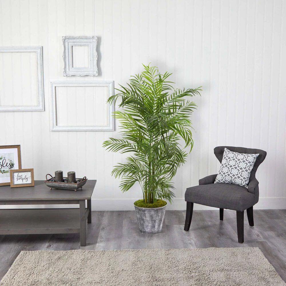 Use maintenance-free greenery to transform bare spaces (inside and out.) like with this artificial areca palm tree flaunting several tiers of realistic, UV Resistant greenery in bright green hues. Standing 63 in. H from a decorative planter, this silk tree can help create a relaxing atmosphere wherever displayed. About Nearly Natural Inc. for over 75-years, Nearly Natural Inc. has been providing conscientious consumers with beautiful alternatives to natural decorations. Employed and advised by naturalists who understand the live plant world, Nearly Natural is able to recreate the most realistic-looking decorative items for homes, offices, and businesses. Driven by a true commitment to customer service, attention to detail, and natural philosophy, Nearly Natural strives to bring customers the most beautiful, unique, and striking faux plants and floral on the market.