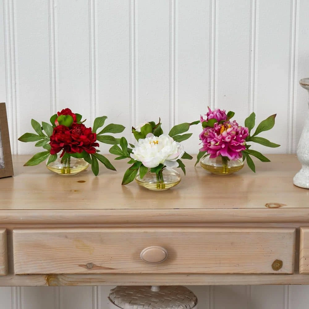 When we created this cute little 6 in. Peony, we said no sir, one is not enough. So we’ve arranged a set of three for Peony lovers everywhere. With two blooms of varying size (one main, one smaller) surrounded by a backdrop of green leaves, these make an ideal decoration for a smaller space that doesn’t want to be overwhelmed. Also makes a really thoughtful gift (who doesn’t like receiving THREE of something beautiful).