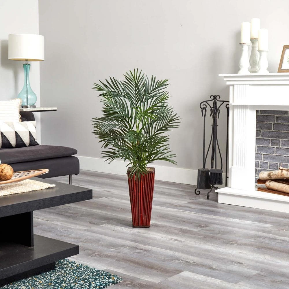 This stunning faux areca palm will give you a lifelike, natural, tropical look without the hassle of watering. It has a low maintenance arrangement. Lush green fronds bursting out from a decorative bamboo planter topped with natural moss.